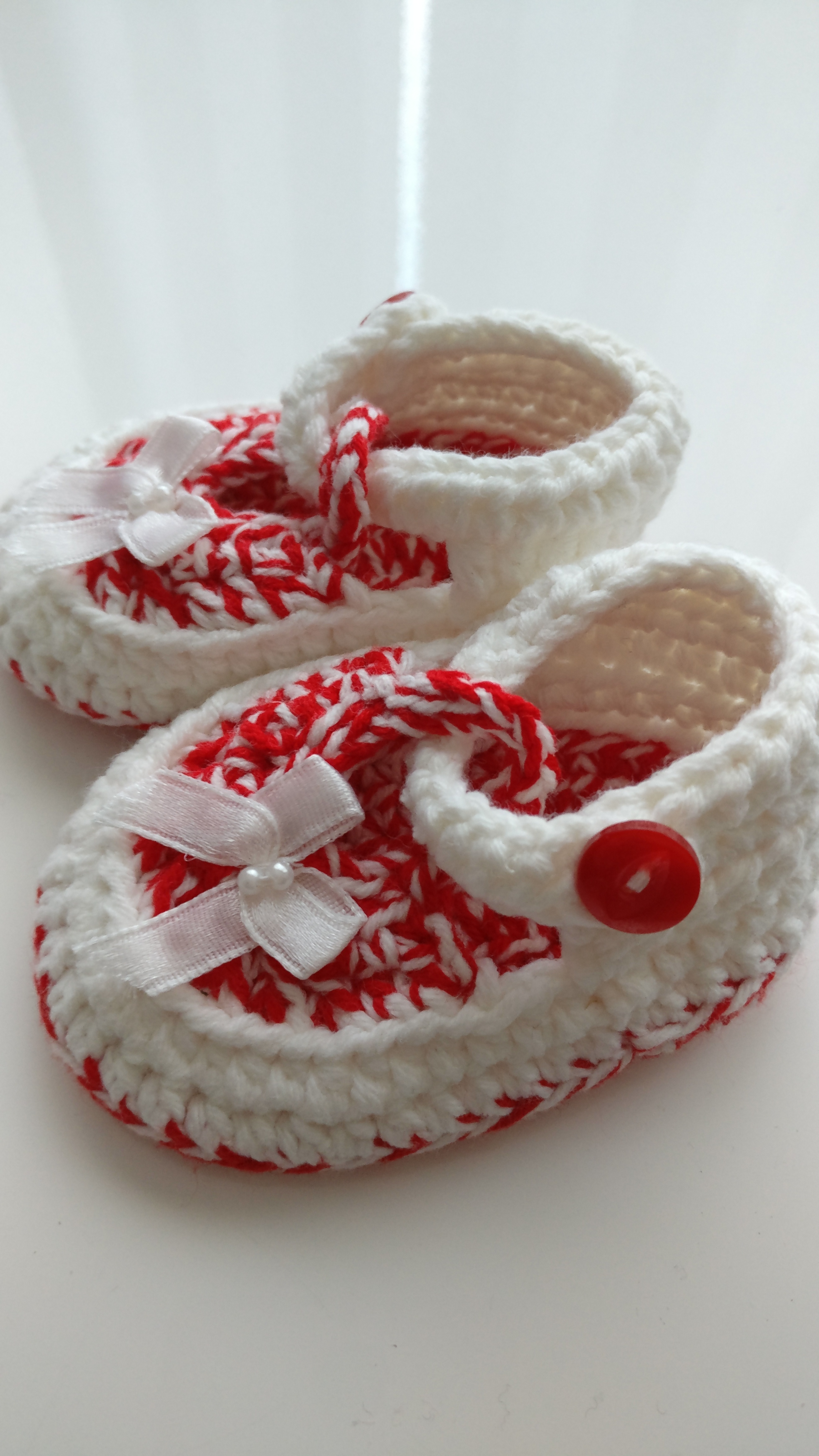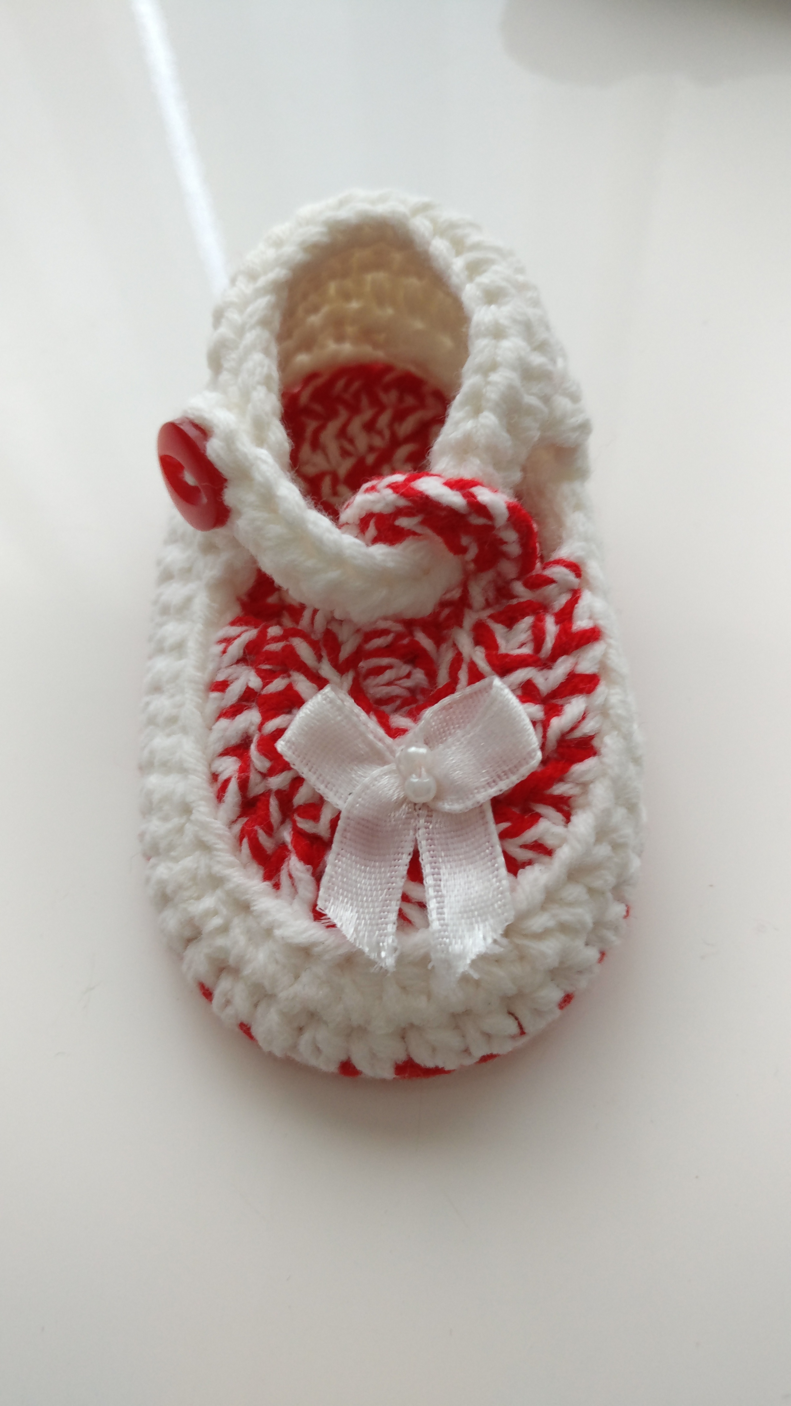 Gehaakte Baby Schoentjes (Rood/Wit)