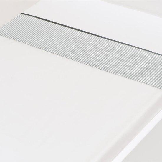 Jenny laken is een wit laken met een strook aan de bovenkant waarop verticale strepen zijn verwerkt.
