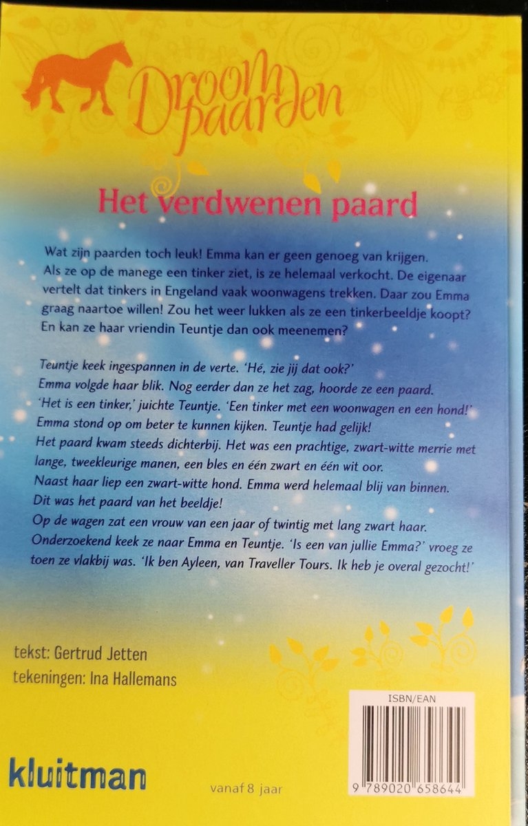 Wat zijn paarden toch leuk! Emma kan er geen genoeg van krijgen. Als ze op de manege een tinker ziet, is ze helemaal verkocht. De eigenaar vertelt dat tinkers in Engeland vaak woonwagens trekken. Daar zou Emma graag naartoe willen! Zou het weer lukken als ze een tinkerbeeldje koopt? En kan ze haar vriendin Teuntje dan ook meenemen?