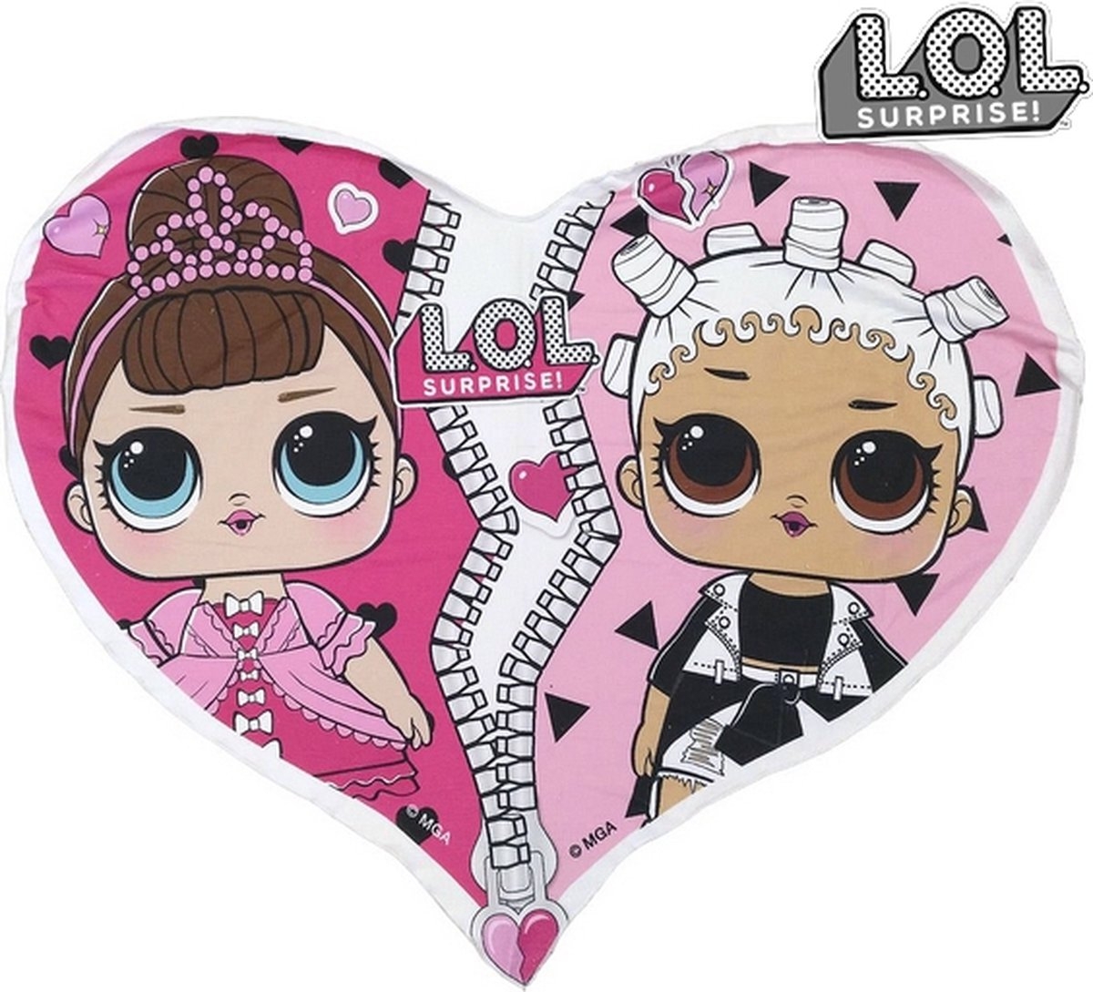 Een superleuke strandlaken van L.O.L. Surprise! in de vorm van een hart.